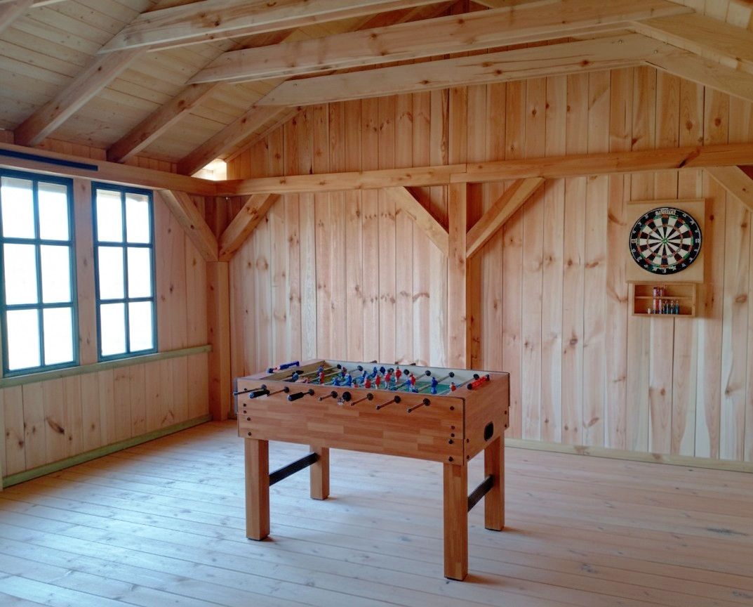 Przestronna świetlica to miejsce stworzone zarówno dla dzieci, jak i dorosłych. Świetlica wyposażona jest w piłkarzyki, rzutki (dart), gry planszowe, zabawki, stół biesiadny oraz stolik kawowy. To świetne miejsce dla wszystkich na wspólne spędzanie czasu, na zabawę, integrację niezależnie od pogody.